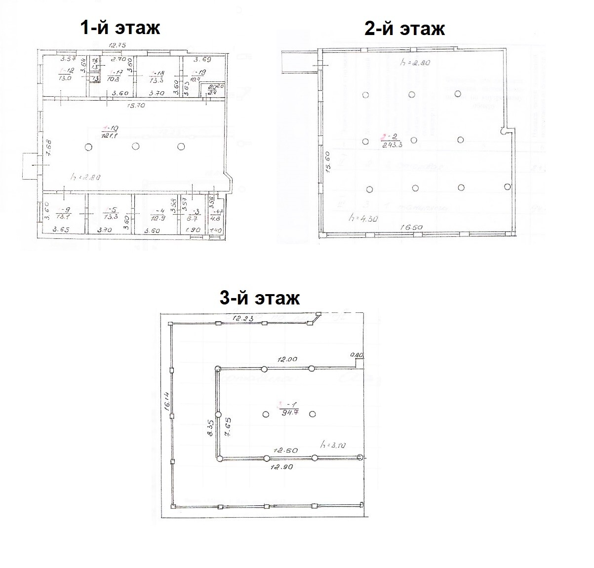 Нежилое помещение занимает 3 этажа, включает в себя: