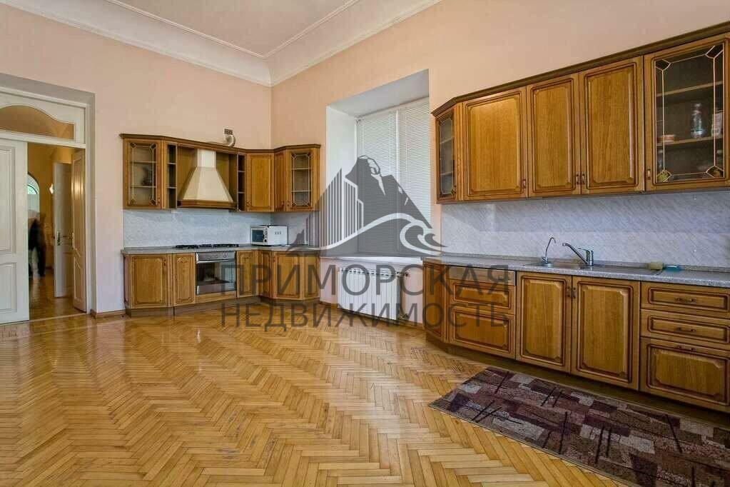 Из окон открывается вид на море и парк. Огромные окна, много света.