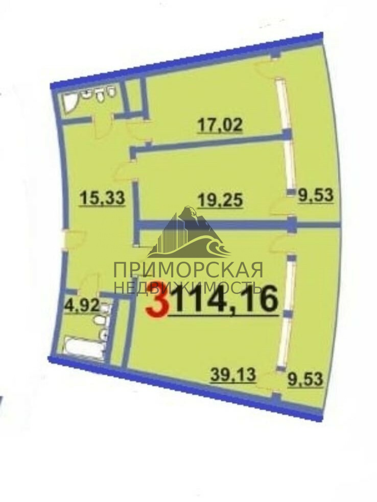 Предлагается к продаже 3-комнатные апартаменты, 126 м², г. Ялта, ул. Коммунаров, д.20А ЖК РОССИЯ