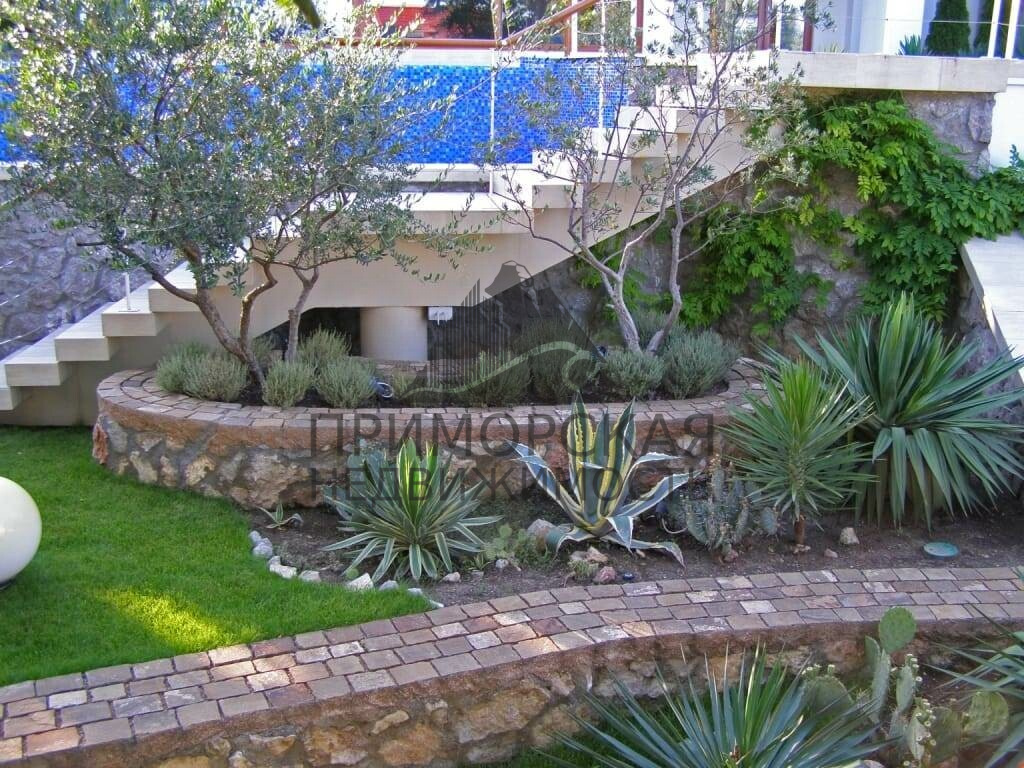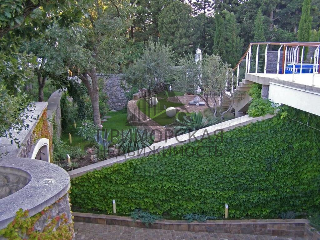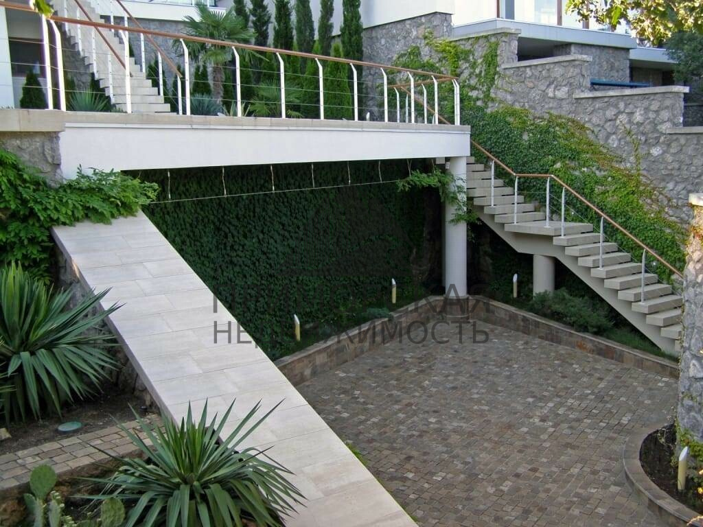 Южная часть виллы и участка обращена к морю, с северной части открывается вид на плато Ай-Петри. Участок имеет удобные подъезды, места для стоянки трех автомобилей. Строение участка - террасное. Имеется зона бассейна и садовая зона с экзотическими растениями и деревьями. Все подводные коммуникации автономны. Объект сдан в эксплуатацию в 2015 году и полностью готов для проживания.
