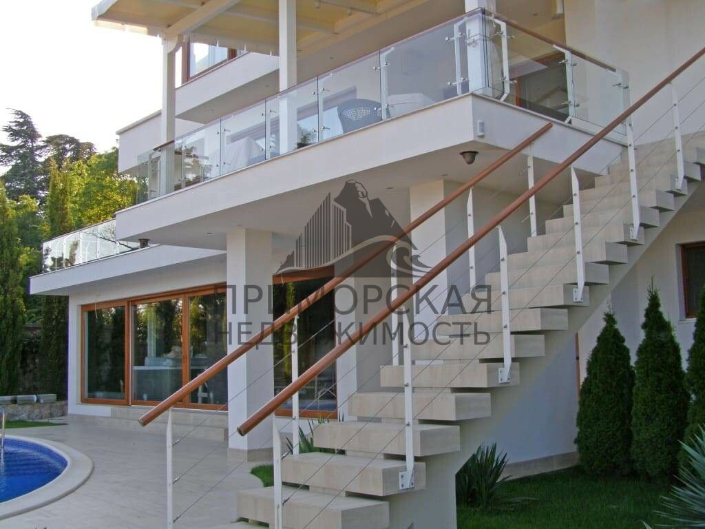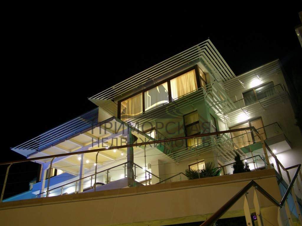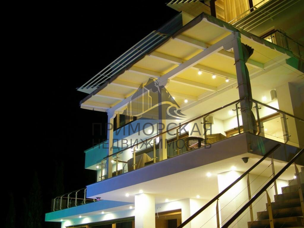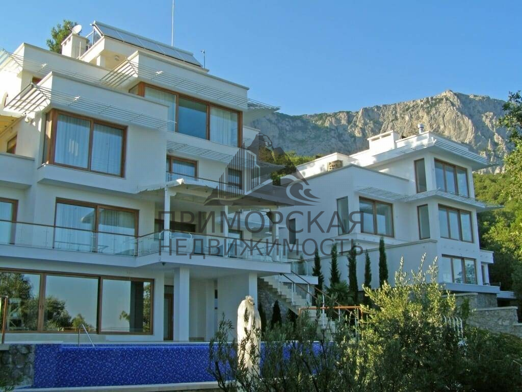 Дом расположен на южном побережье Крыма в одном из наиболее спокойных и не тронутых Характеристики зданий и сооружений Интерьер и оборудование Все несущие конструкции выполнены из монолита с учетом сейсмоактивности. Панорамное остекление выполнено по раздвижной технологи, окна и террасы оборудованы солнцезащитой.