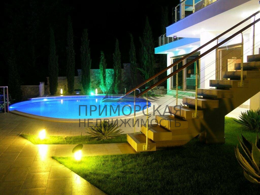 Общая площадь дома с учетом террас более 800 кв.м. Возможно комфортное проживание нескольких семей. Интерьер и дома выполнен по индивидуальному заказу европейскими специалистами в стиле эко-минимализм. урбанизацией поселков - Верхнем Кастрополе, возле мыса Эфигения.