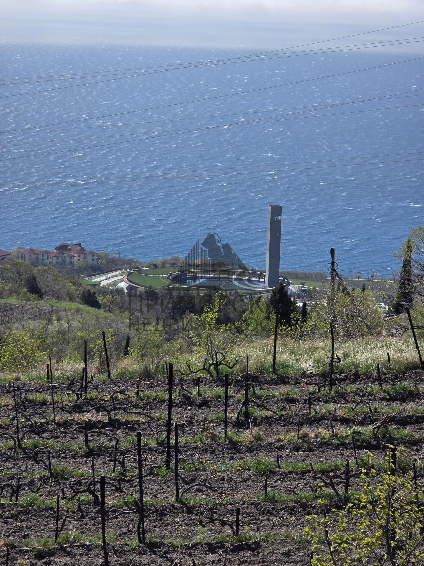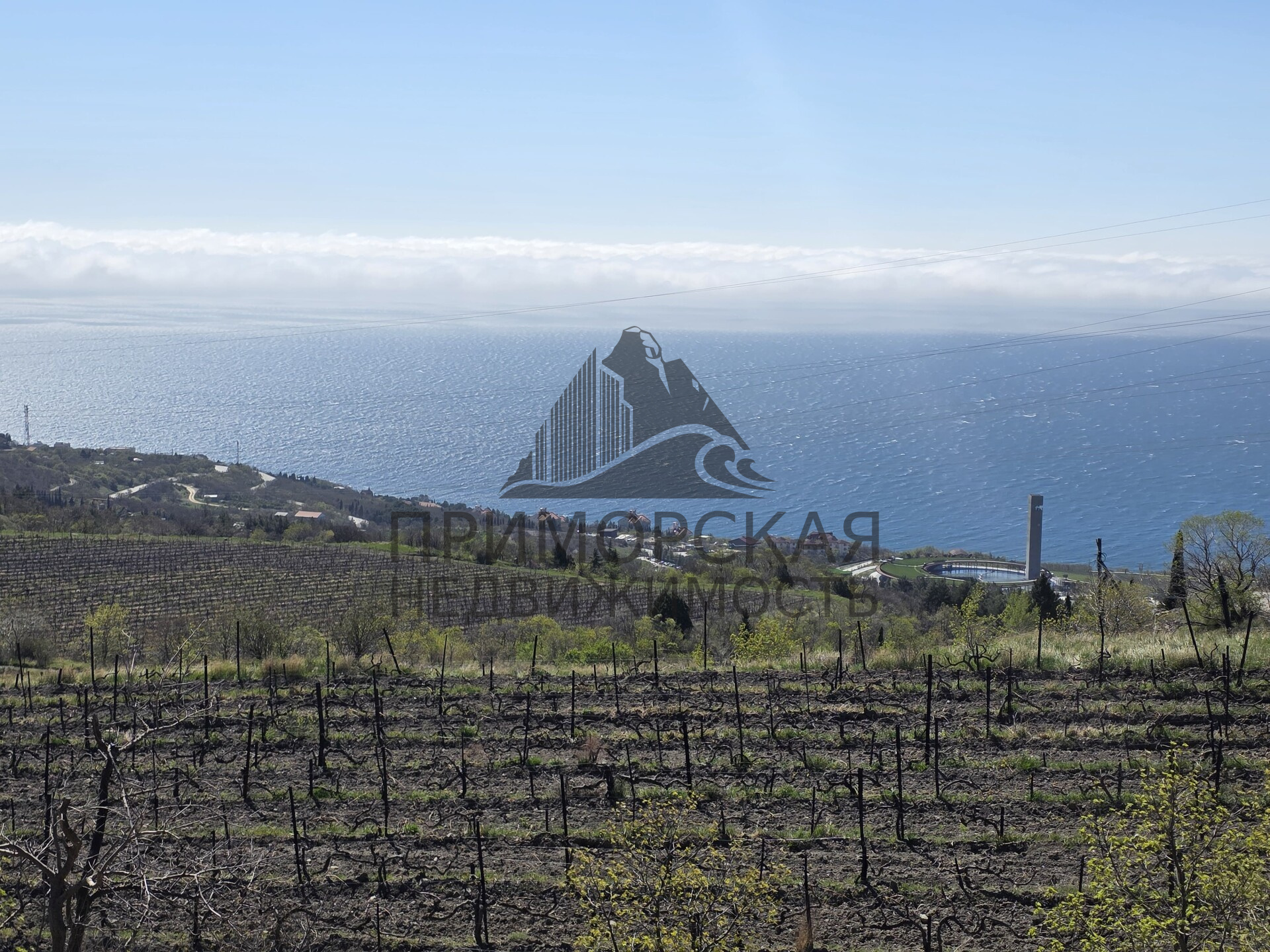С участка открывается потрясающий вид на море, горы, виноградники и отель Мрия.
