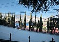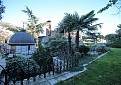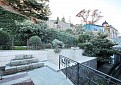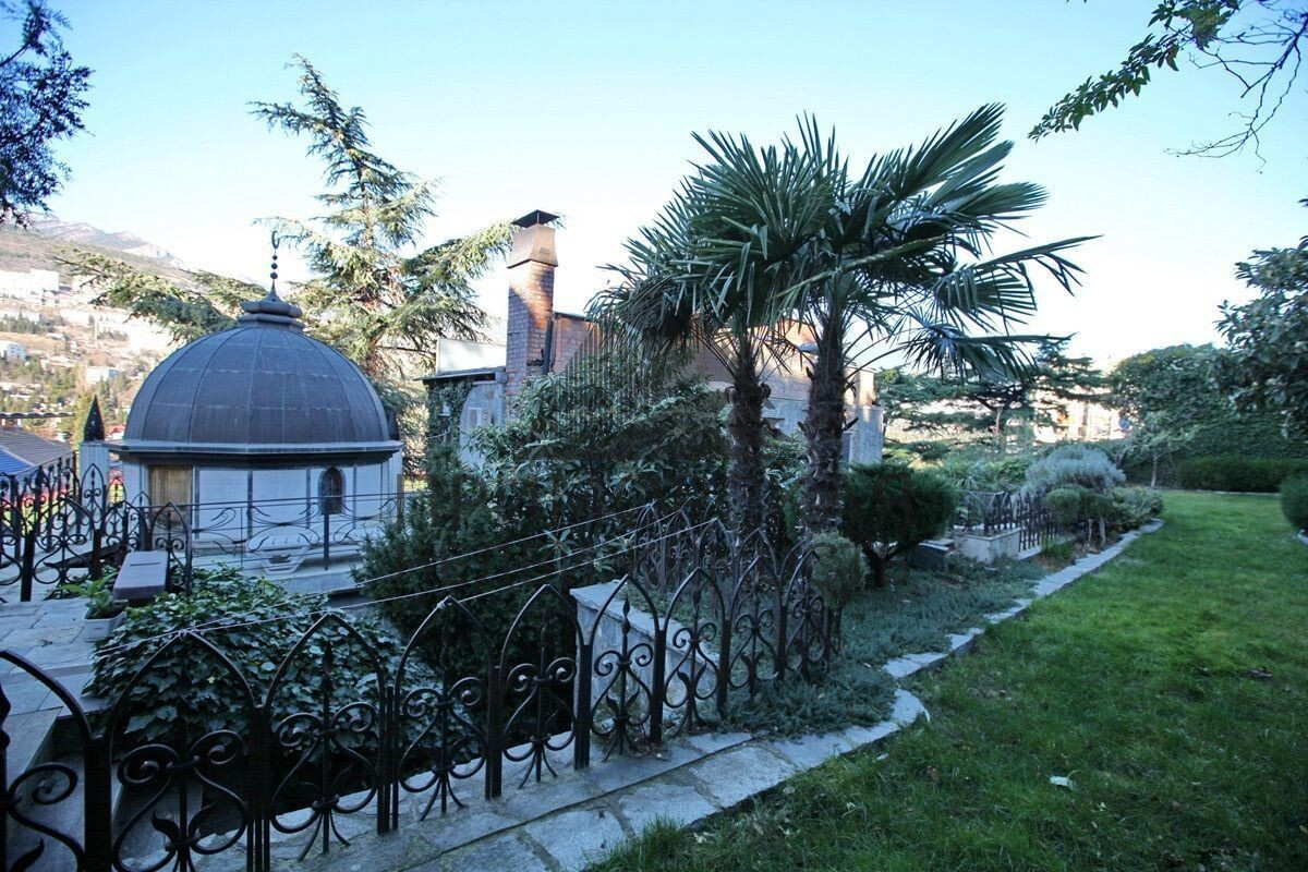 Участок — закрытый, 2,5 м забор, вековые ели, пальмы, розы, лавр, глициния. Два бассейна — один с водопадом, второй — для купания, облицован мрамором.