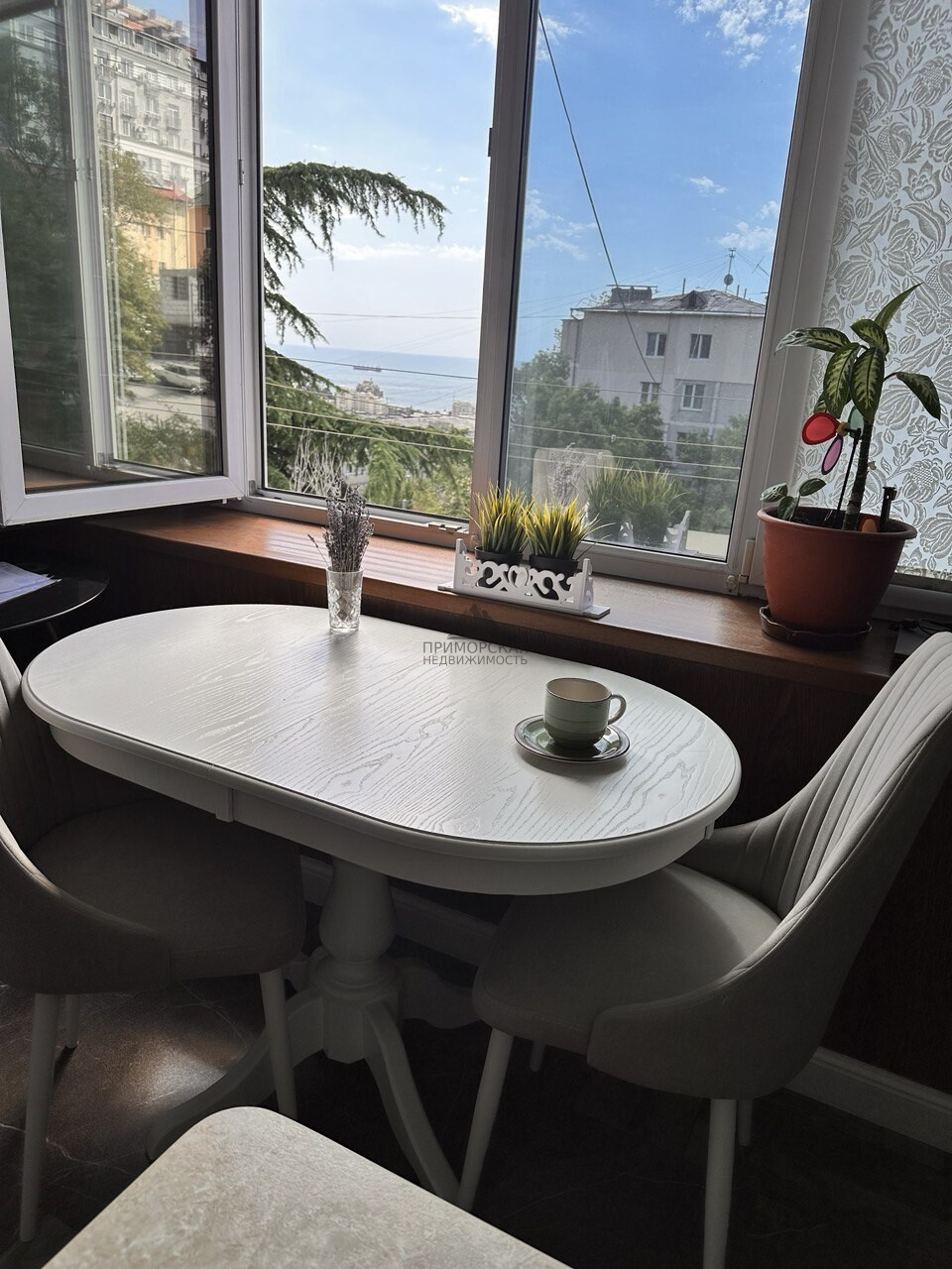 Можно организовать обеденный стол прямо у окна и завтракать с видом на Ялту.